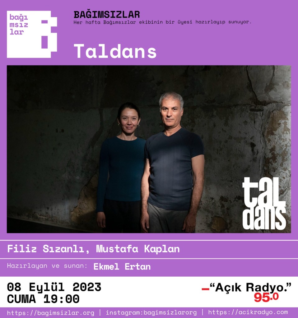 Şehir Tiyatroları Muhsin Ertuğrul sahnesindeki Tiyatro Araştırma Laboratuarı ile başlayan, Türkiye’de çağdaş dans sahnesinin ortaya çıkmasına ön ayak olan süreç ve bağımsız dans kumpanyası olan Taldans’ın kurucuları Filiz Sızanlı ve Mustafa Kaplan, 8 Eylül 2023 tarihinde Açık Radyo‘nun Bağımsızlar programında Ekmel Ertan‘ın konuğu oldu.